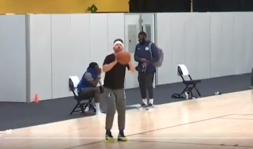 看球吧7月16日讯 今天,NBA官方晒出独行侠后卫何塞-巴里亚在训练期间进行花式投篮的视频。 巴里亚先是完成了一个篮板后投篮,随后在罚球线命中一记击地后打
