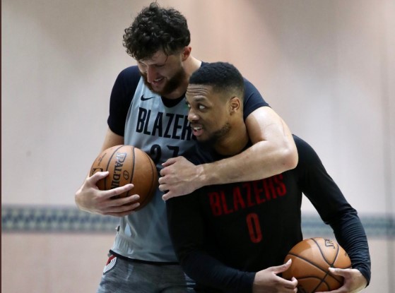 看球吧7月15日讯 开拓者官方推特今日晒出了一组达米安-利拉德和优素福-努尔基奇的合照。 “兄弟情