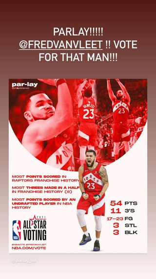 博球00702月04日讯 今日,森林狼球员马利克-比斯利更新了个人Instagram Story,为猛龙球员弗雷德-范弗里特入选全明星拉票。