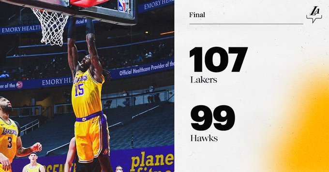 博球0072月2日讯 今天NBA常规赛湖人客场对阵老鹰的比赛已经结束。全场战罢,湖人以107-99战胜老鹰。 本场比赛,湖人球员安东尼-戴维