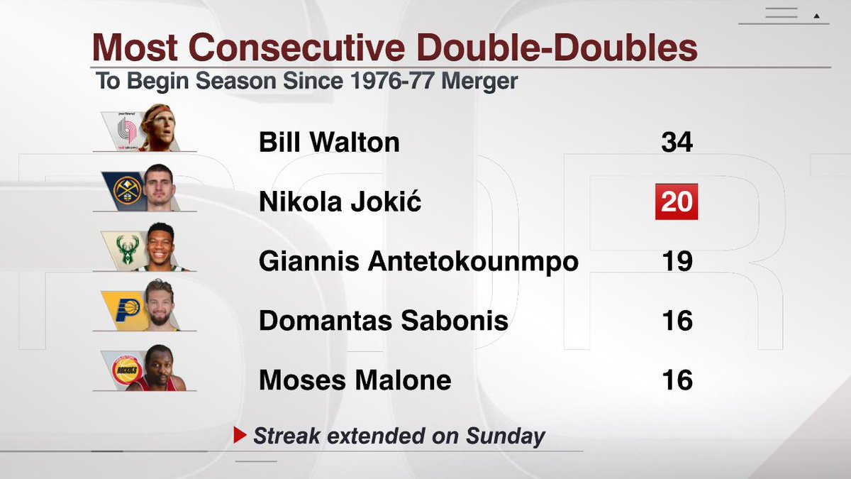 马力全开!约基奇一开季就连续20场拿到两双,排历史第二位