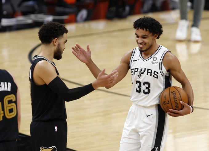 博球00701月31日讯 今日,灰熊以129-112击败马刺。 赛后,灰熊官方更新推特,晒出一组灰熊球员泰厄斯-琼斯和马刺球员特雷-琼斯的赛