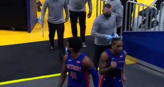 博球00701月31日讯 今天,勇士118-91战胜活塞。 赛后,活塞球员罗德尼-麦格鲁德在球员通道附近朝几名勇士球员嚷嚷。 对