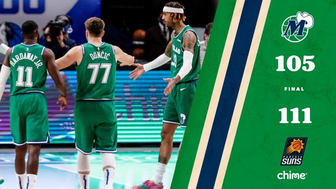 博球00701月31日讯 在刚刚结束的一场比赛,独行侠以105-111不敌太阳。 此役过后,独行侠已经遭到5连败,近10场8负,战绩8胜12