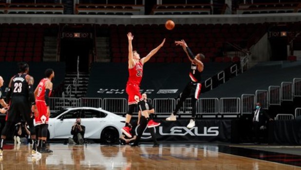 博球00701月31日讯 在今天结束的一场比赛中,开拓者凭借达米安-利拉德的绝杀,以123-122险胜公牛。 据统计,这是他生涯第三次命中