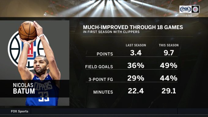 博球00701月29日讯 今天,Tomer Azarly在推特上晒出了快船前锋尼古拉斯-巴图姆本赛季与上赛季的数据对比。 上赛季巴图姆场均出