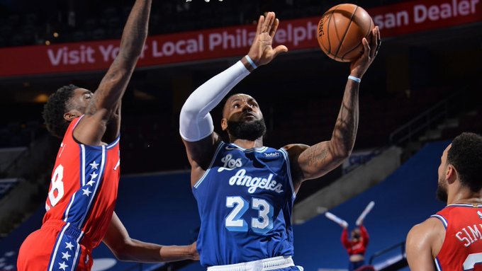 博球00701月28日讯 今日,湖人106-107客场惜败于76人。 本场比赛,湖人前锋勒布朗-詹姆斯得到34分6篮板6助攻。 据ESPN统