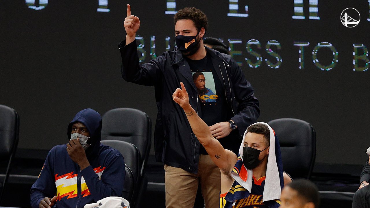 拉拉队头牌!克莱-汤普森场边观战为队友打气