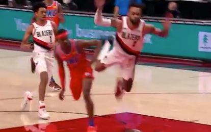 把亚历山大都逗笑了!特伦特快攻掉球后夸张倒地