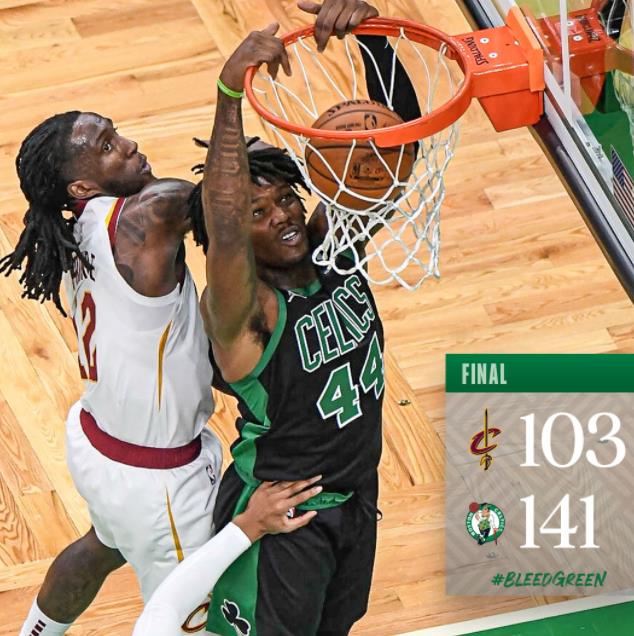 博球0071月25日讯 今天NBA常规赛凯尔特人主场对阵骑士的比赛已经结束。全场战罢,凯尔特人以141-103战胜骑士。 本场比赛,凯尔特人