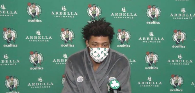 博球00701月25日讯 在今日结束的一场常规赛中,凯尔特人以141-103大胜骑士。赛后,凯尔特人球员马库斯-斯马特接受了媒体采访。 谈