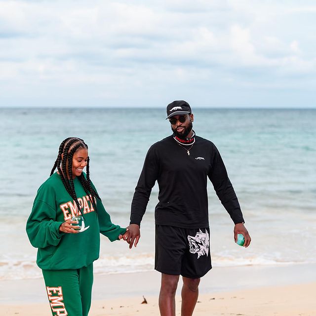 漫步海滩!韦德Ins秀恩爱:与你携手时,我是一股力量