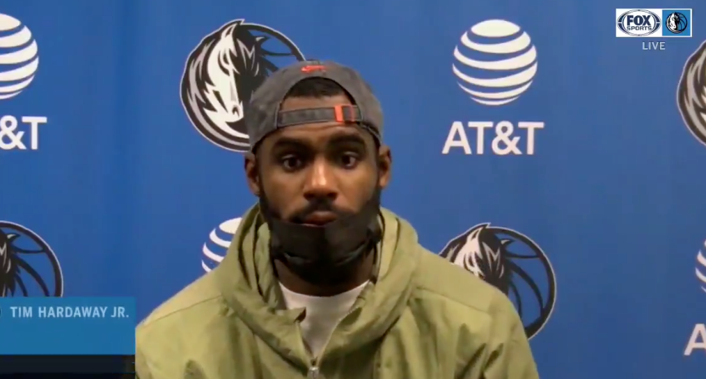 博球00701月23日讯 在今日结束的一场常规赛中,独行侠以122-117击败马刺。赛后,独行侠球员小蒂姆-哈达威接受了媒体采访。 谈到球队