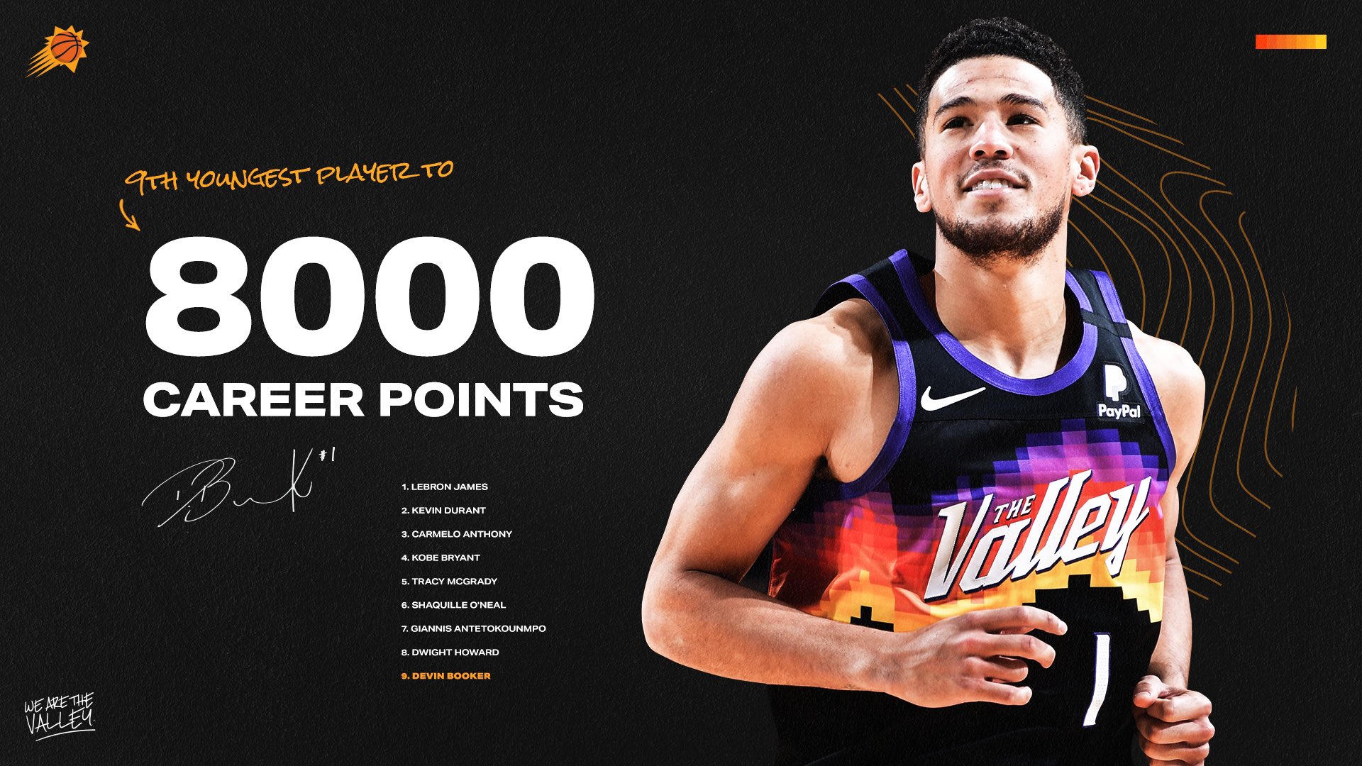 布克职业生涯超过8000分,NBA第9年轻达到此成就