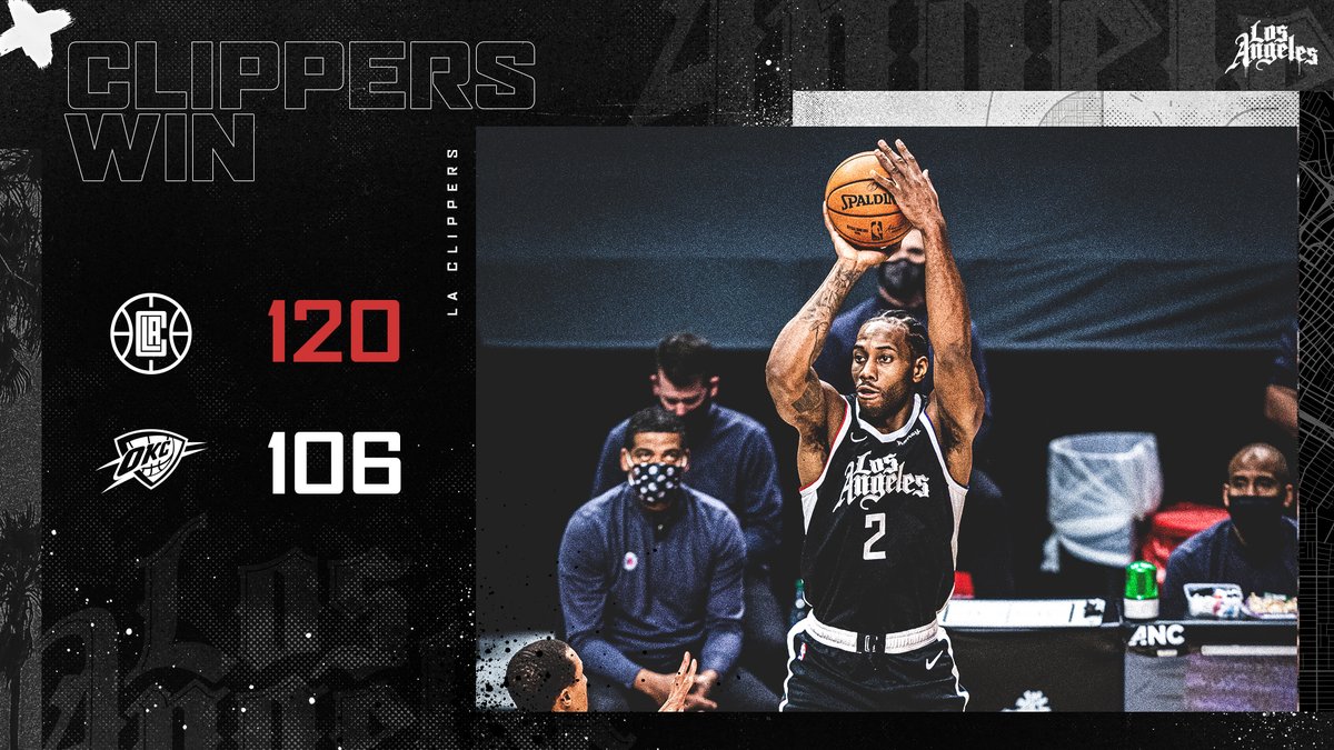 博球00701月23日讯 今日,快船以120-106击败雷霆。 赛后,快船官方更新推特,晒出一张快船球员科怀-伦纳德的赛场照庆祝比赛胜利。