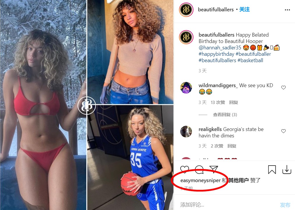 不愧是你!杜兰特点赞美女篮球手照片,并且关注了她