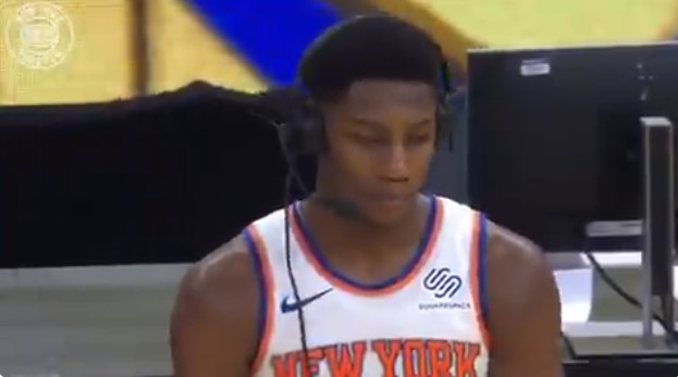 博球00701月22日讯 在今天结束的一场比赛中,尼克斯以119-104战胜勇士。 赛后,尼克斯球员RJ-巴雷特在场边接受媒体采访。 巴