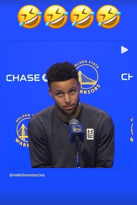 博球00701月22日讯 今日,勇士后卫肯特-贝兹莫尔更新 Instagram Story,转发库里的表情照。 一名记者在向勇士后卫斯蒂芬-