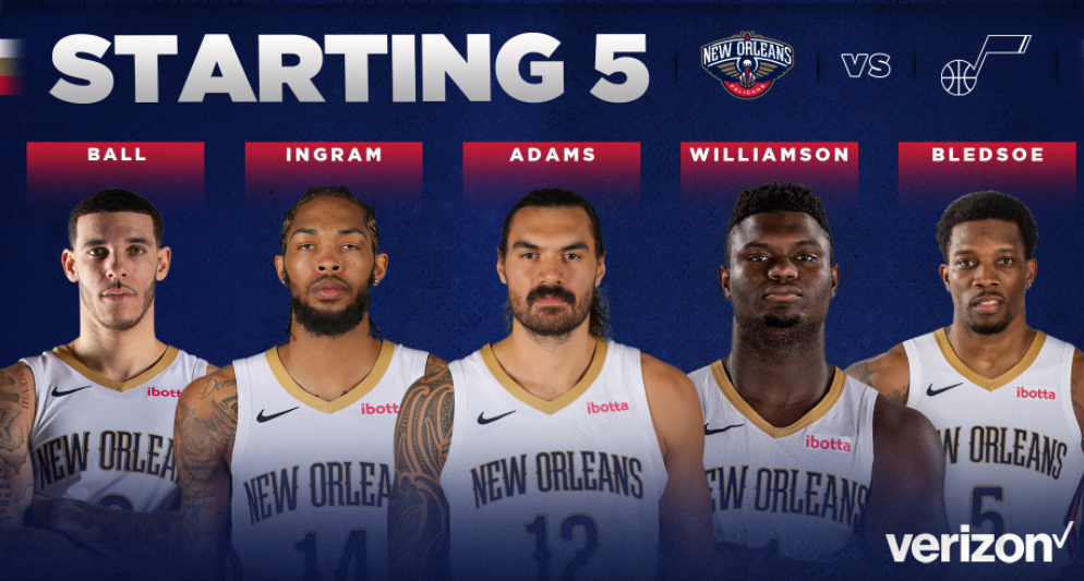博球00701月22日讯 今天,鹈鹕对阵爵士。赛前,鹈鹕官方公布了本场首发阵容: 朗佐-鲍尔 埃里克-布莱索 布兰登-英格拉姆