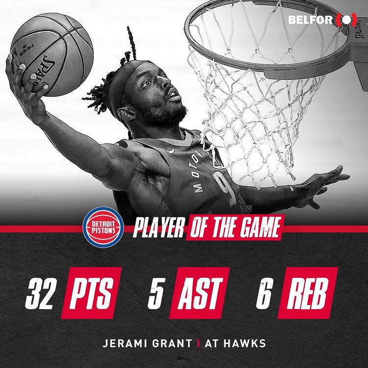 活塞官方晒格兰特:再接再厉,已经连续13场是队内得分王