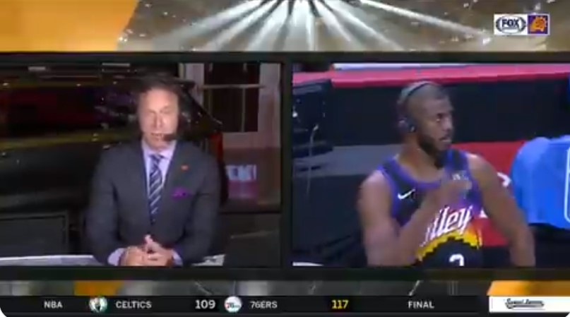 博球00701月21日讯 在今天结束的一场比赛中,太阳以109-103战胜火箭。 赛后,太阳后卫克里斯-保罗在场边接受媒体采访。 保罗首