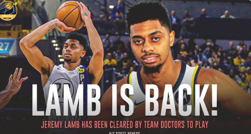 博球00701月21日讯 步行者在今日比赛中112-124不敌独行侠。赛后,步行者球员杰里米-兰姆接受了采访。 兰姆透露,他大约在一星期前知