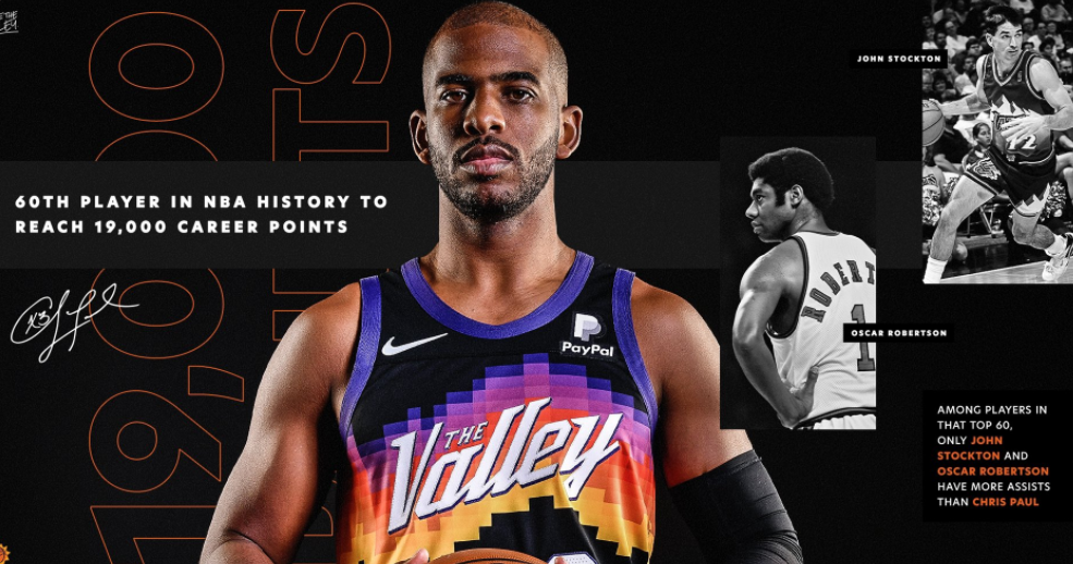 太阳官推晒图祝贺保罗:恭喜保罗拿到19000分!
