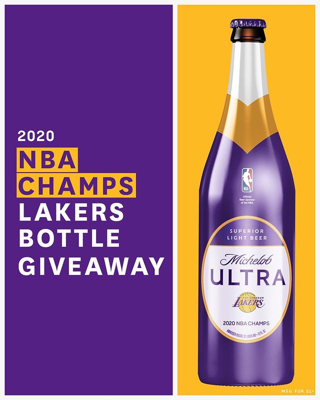 博球00701月20日讯 今天,湖人官方Ins晒出了球队推出的冠军特别版酒瓶,并配文道: “谁说庆祝已经结束了? 我们与@Michelob