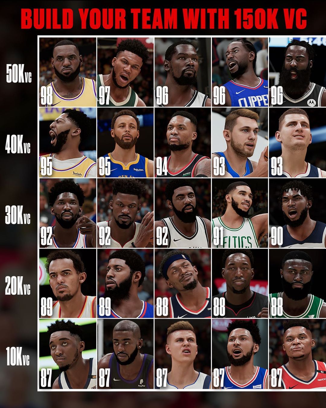 NBA2K晒球员阵容:给你150K组建你的球队