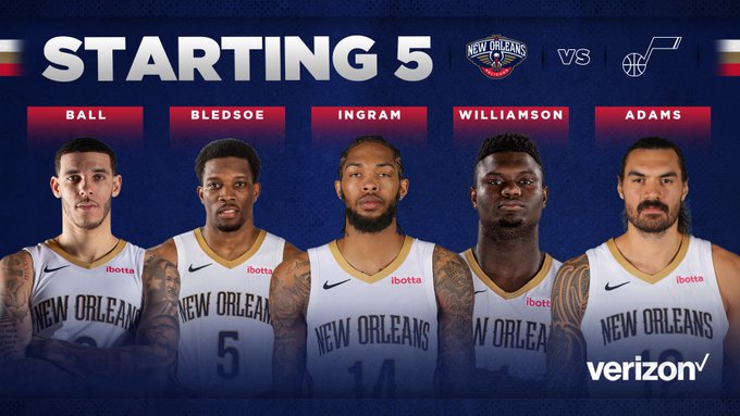 博球00701月20日讯 今天上午10:00,鹈鹕对阵爵士。赛前,鹈鹕官方公布了本场的首发阵容: 朗佐-鲍尔 埃里克-布莱索 布兰登-