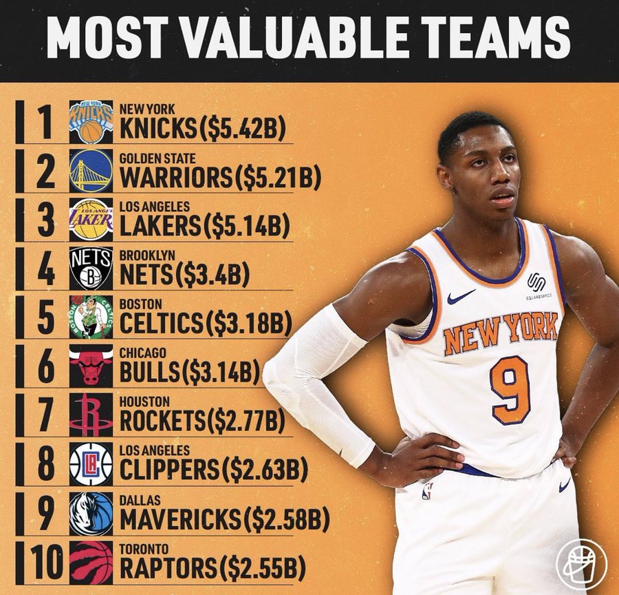 媒体晒NBA球队市值排名:尼克斯勇士湖人篮网分列前四