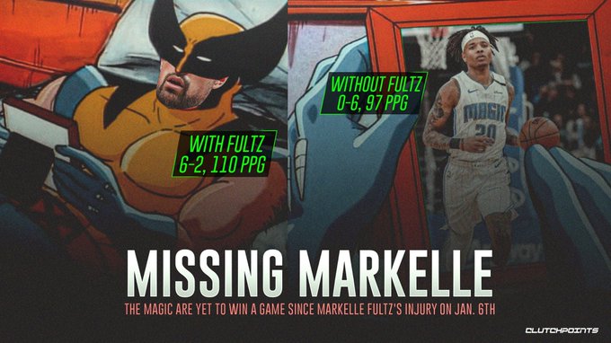博球00701月19日讯 魔术在今天的比赛以85-91不敌尼克斯,遭到6连败。 媒体ClutchPoints给出一项数据,在马克尔-富尔茨受