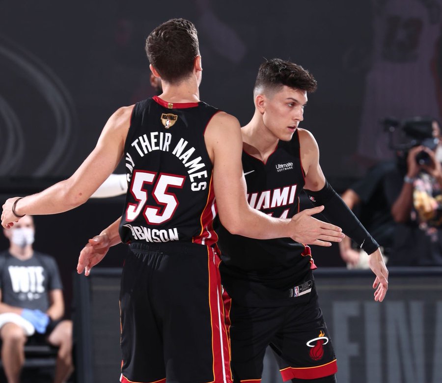 博球00701月18日讯 今天,NBA Central晒出了热火后卫邓肯-罗宾逊和泰勒-希罗过去三场比赛的场均数据。 邓肯-罗宾逊: 23.
