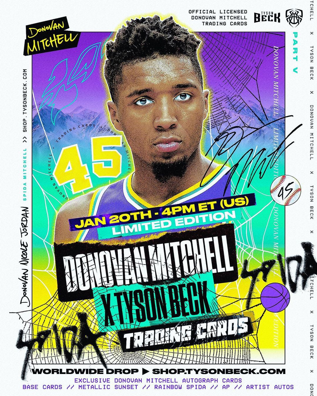 博球00701月17日讯 今日,艺术家Tyson Beck更新了个人Instagram,晒出自己为爵士球员多诺万-米切尔设计的定制球星卡。