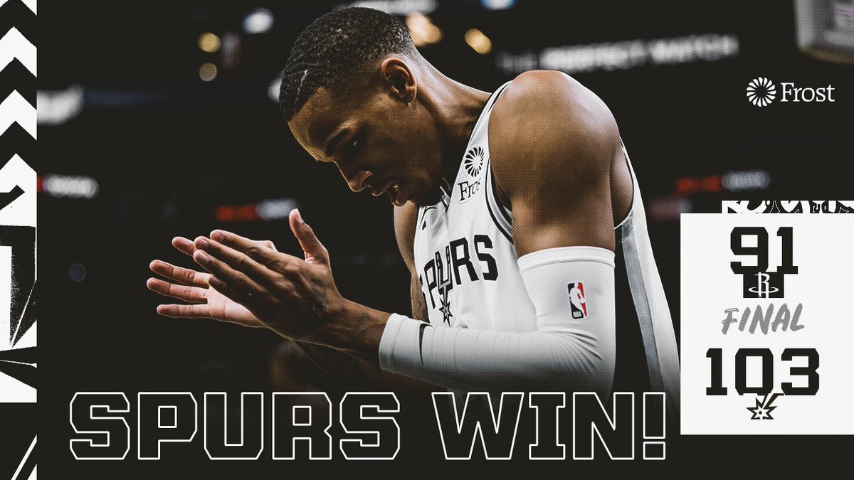博球00701月17日讯 今日,马刺以103-91击败火箭。 赛后,马刺官方更新推特,晒出一张马刺球员德章泰-默里的赛场照庆祝比赛胜利。 “