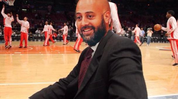 奥拉迪波随队来到了球馆,观战火箭对阵马刺比赛