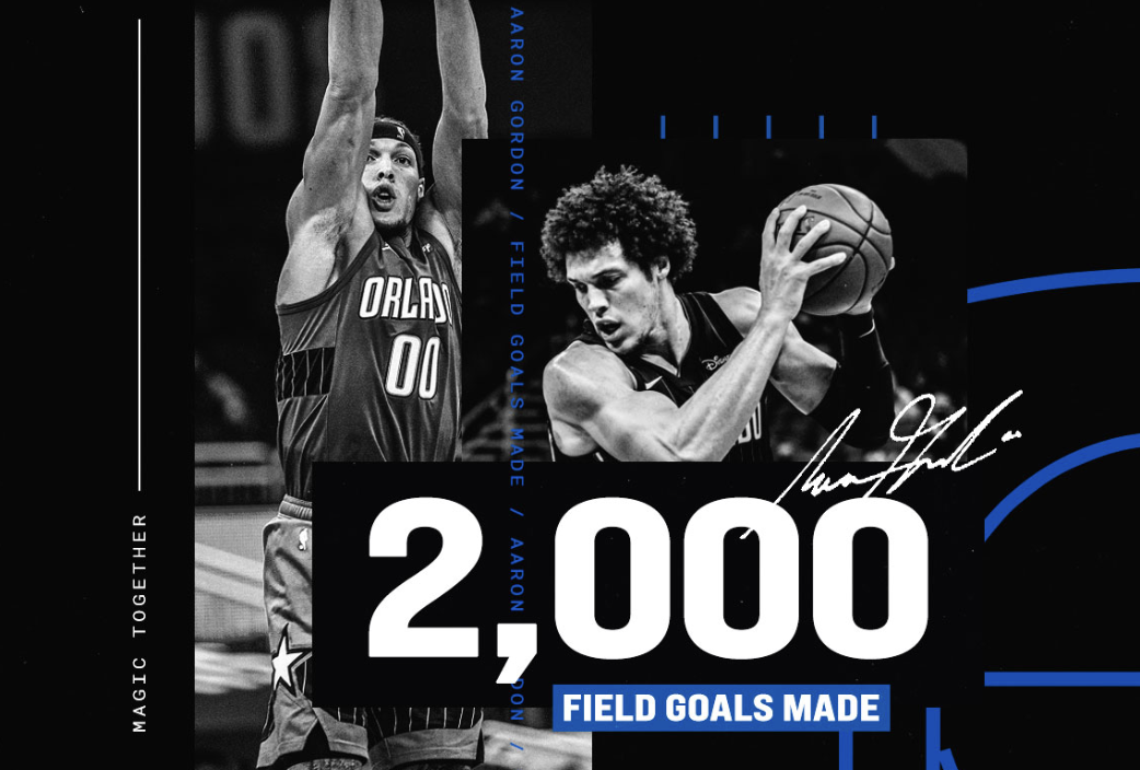 里程碑!魔术官方祝贺阿龙-戈登生涯投篮命中数突破2000