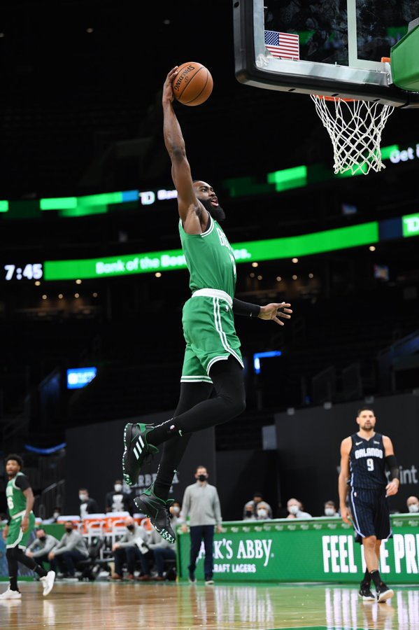 三节下班!凯尔特人官方晒杰伦扣篮照与球迷分享