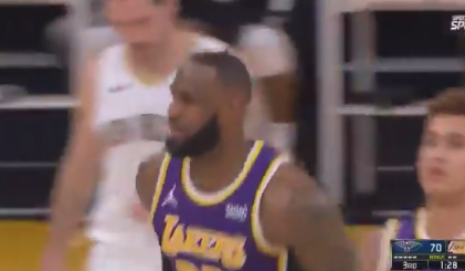 老同志不讲武德!詹姆斯从三分线冲进禁区补扣得手