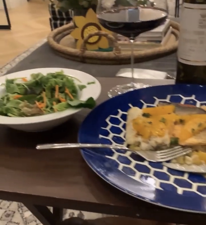 悠然自得!詹姆斯晒今日晚餐,红酒配沙拉和主食