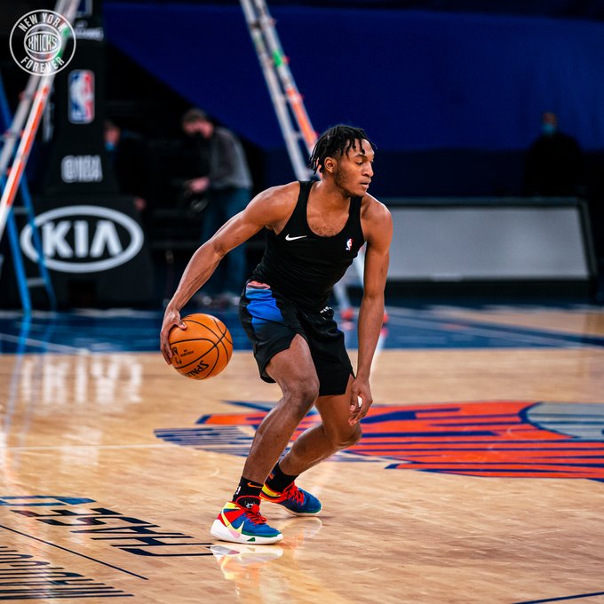 博球00701月14日讯 今日,尼克斯以109-116不敌篮网。 赛后,尼克斯官方更新推特,晒出一组尼克斯球员伊曼纽尔-奎克利的赛后训练照与
