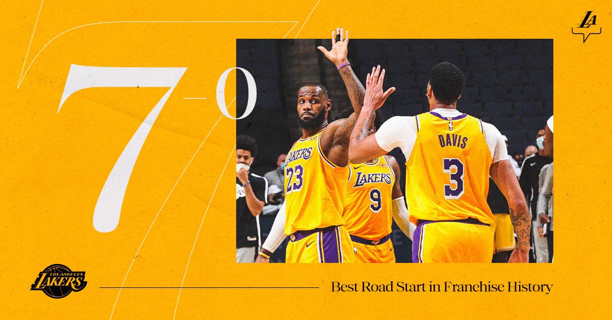 湖人开赛以来取得客场七连胜,创造队史纪录