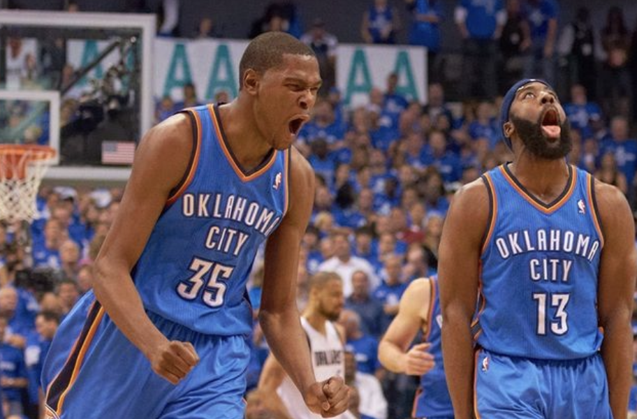 都回来了!美媒晒杜兰特哈登雷霆时期的赛场照与球迷分享