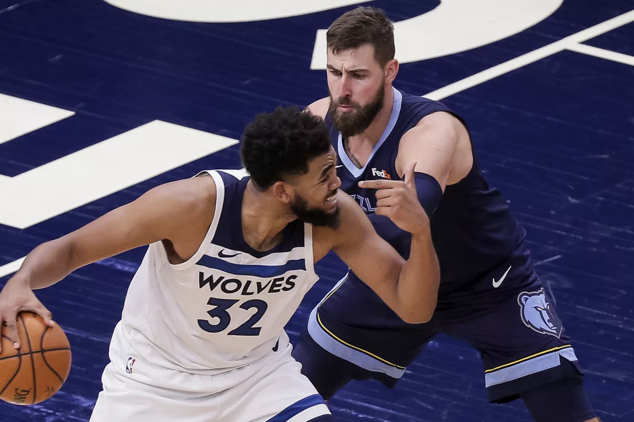 博球00701月14日讯 在今日已经结束的一场NBA常规赛中,森林狼最终以107-118不敌灰熊。 本场比赛,森林狼球员卡尔-安东尼-唐斯共
