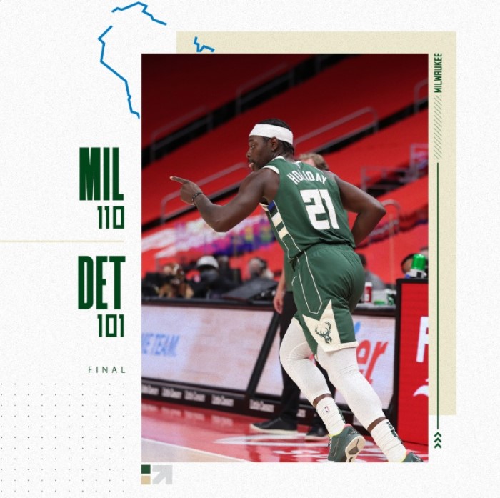 博球00701月14日讯 在今天结束的一场比赛中,活塞以101-110不敌雄鹿。 本场比赛,活塞前锋杰拉米-格兰特上场35分钟,得到22分