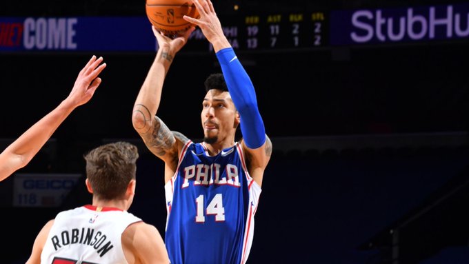 博球00701月13日讯 今日76人主场迎战热火,最终历经一个加时,76人137-134战胜热火。 本场比赛76人后卫丹尼-格林命中9个三分