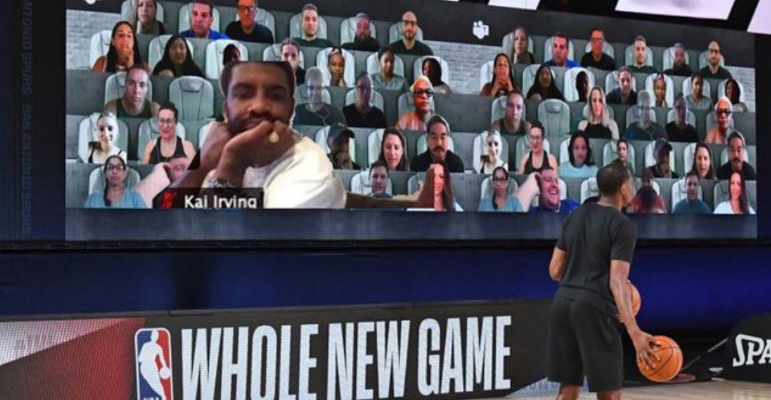 记者晒欧文趣味合成图,现身篮网球迷虚拟大屏观看比赛