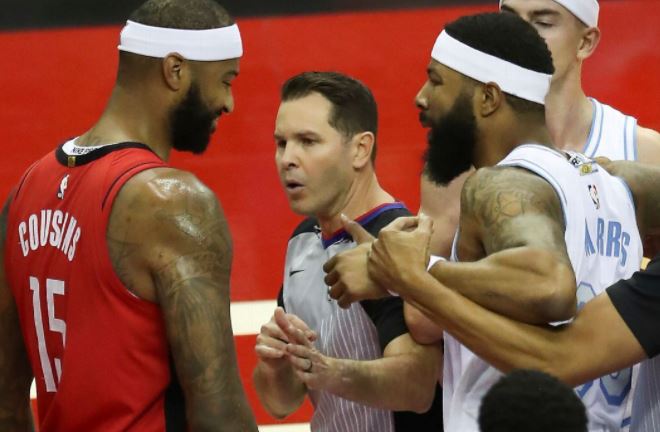 博球00701月12日讯 今日NBA官方宣布,湖人前锋马基夫-莫里斯和火箭中锋德马库斯-考辛斯因比赛期间发生冲突分别被罚款35000美元和1