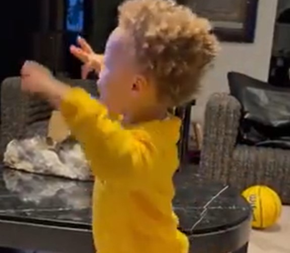 博球00701月12日讯 今日,勇士后卫斯蒂芬-库里的妻子阿耶莎更新了个人Instagram,晒出儿子卡农看篮球比赛时手舞足蹈的片段。