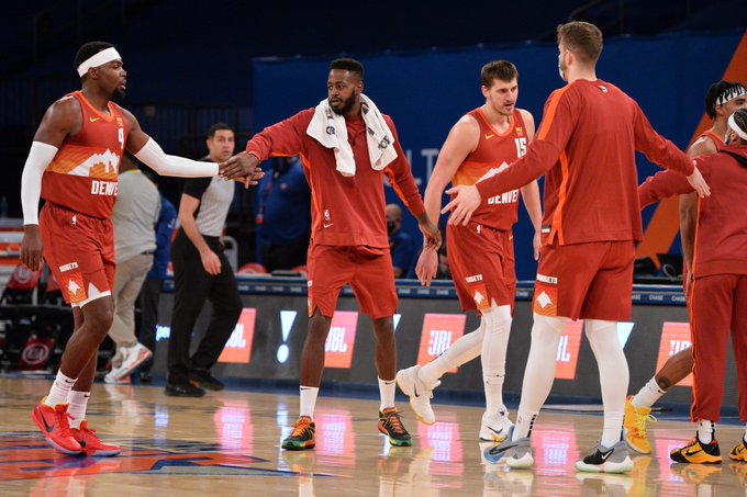 博球00701月11日讯 今日,掘金以114-89击败尼克斯。 赛后,掘金官方更新推特,晒出一组球员们的赛场照庆祝本场比赛的胜利。 “身穿城